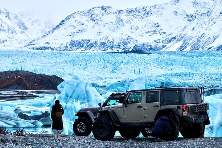 The Knik Glacier off-roading and hiking tour stands out because it combines two adventures in one—an exciting ride through true Alaskan wilderness in a specially modified Jeep, followed by an up-close hike to one of the state’s most dynamic and impressive glaciers. Unlike crowded trails elsewhere, the Knik area is remote, quiet, and constantly changing, with shifting icebergs, bright blue melt pools, and dramatic mountain views that make every visit unique. Guests get the thrill of rugged off-road travel, the beauty of glacier trekking, and unforgettable photo opportunities—all without needing technical skills—creating an authentic, immersive Alaska experience you won’t find on other tours.